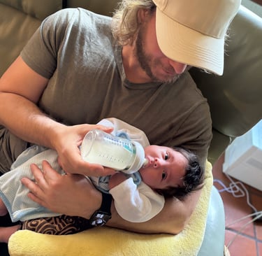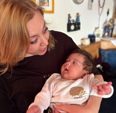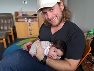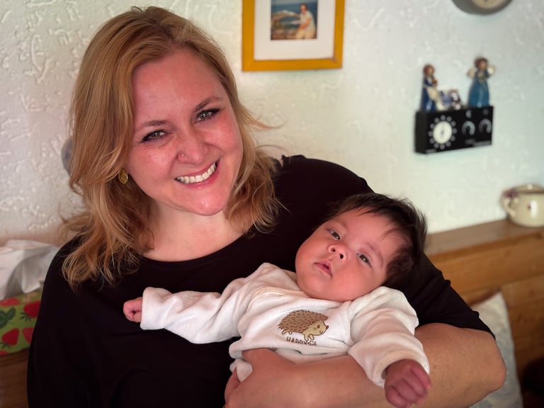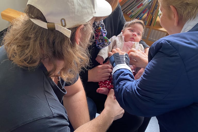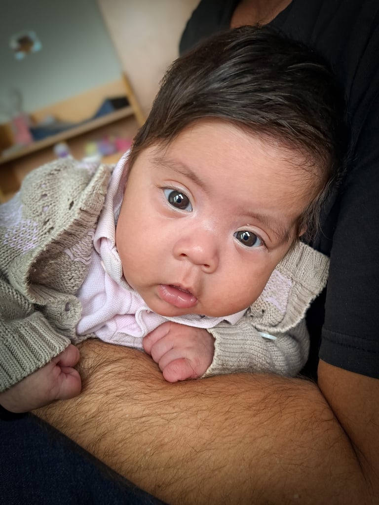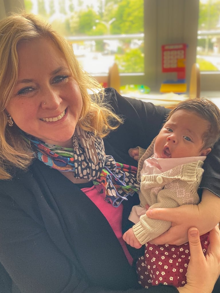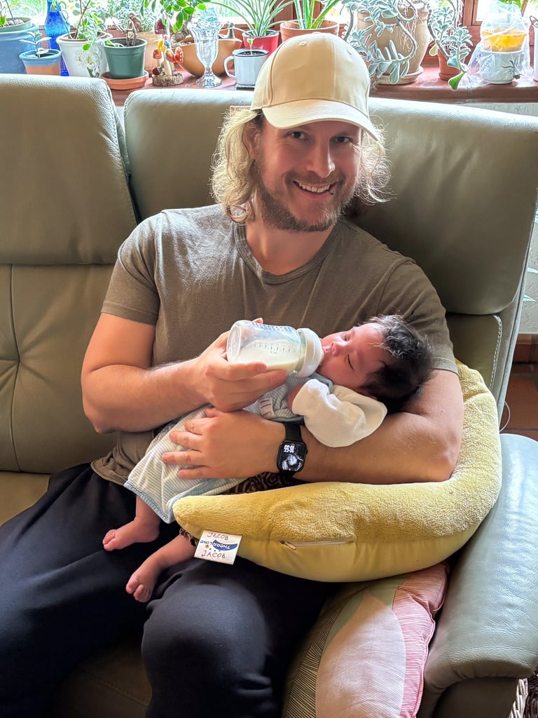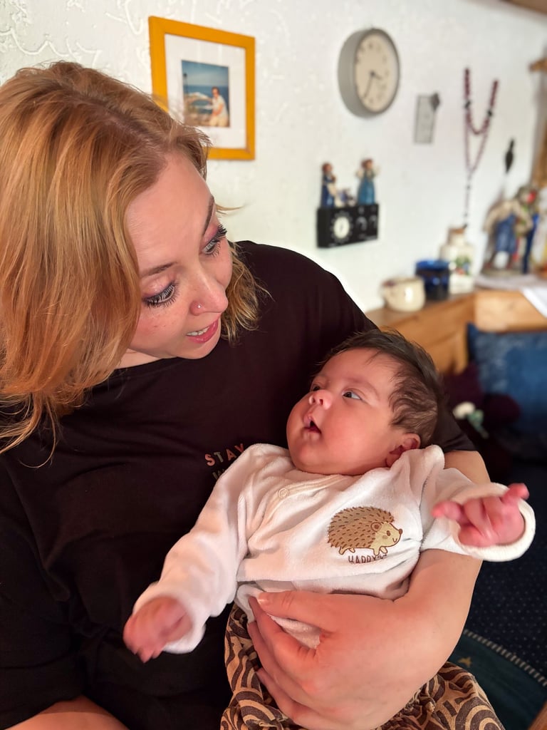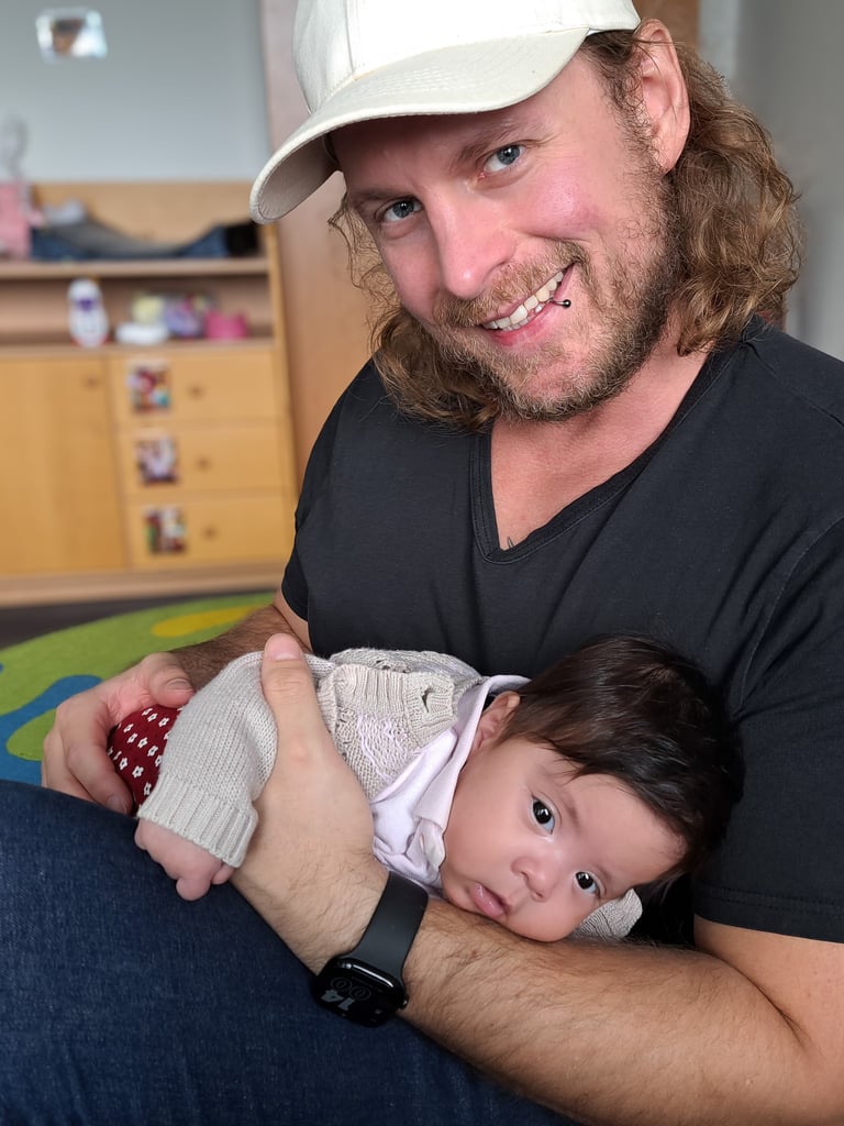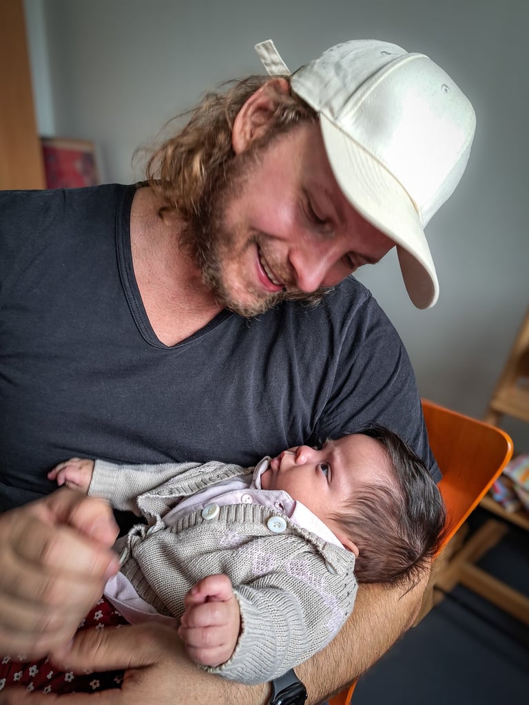 Diesmal hatten wir zum Glück den ganzen Nachmittag Zeit und haben jede Minute mit Emilia genossen. Sie ist nicht nur unglaublich süß, sondern auch unglaublich stark! Haare und T-Shirt ziehen, abstemmen mit den Füßchen, man hat die eine Kraft! Dass die Kleine am 08.01.2025 mit nur 2.220 Gramm geboren wurde und über Wochen künstlich mit einer Magensonde ernährt werden musste, sieht man ihr nicht mehr an.