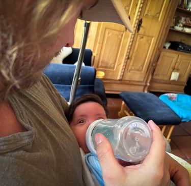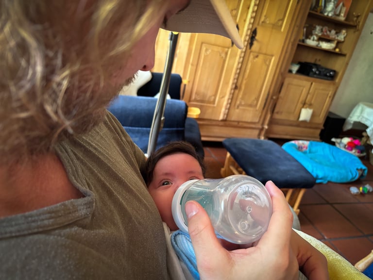 Aber wer das Fläschchen quasi ohne absetzen in einen Zug leer macht, legt eben auch gut zu. So wiegt klein Emilia mittlerweile auch schon über 5kg.