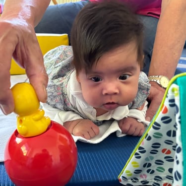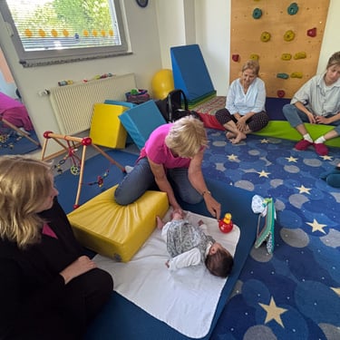 Außerdem haben wir bei der ersten Physio mit ihr schon gelernt, was wir mit Emilia alles anstellen können, um sie noch mehr zu fördern bei der Entwicklung. Und was das angeht macht sie Tag für Tag Fortschritte.