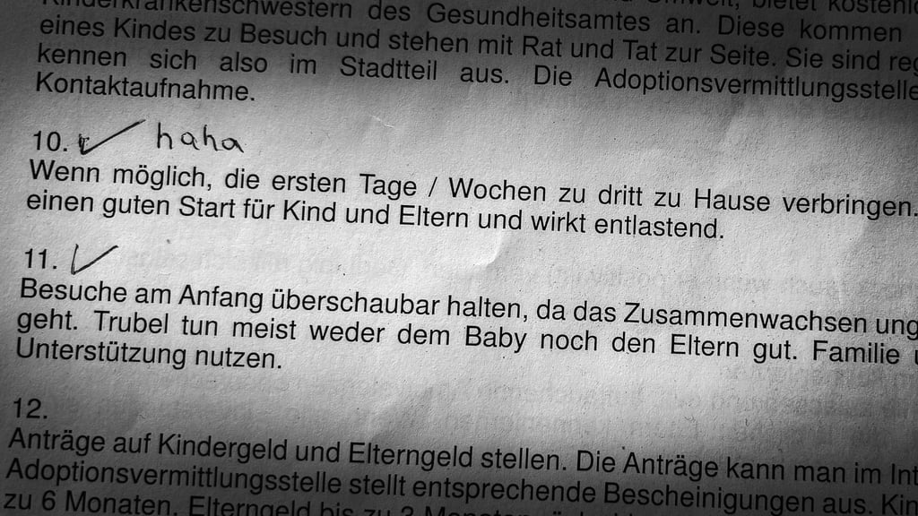 Achso... die Punkte 10 und 11 der 34-Punkte To-Do- / Checkliste vom Jugendamt: