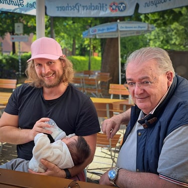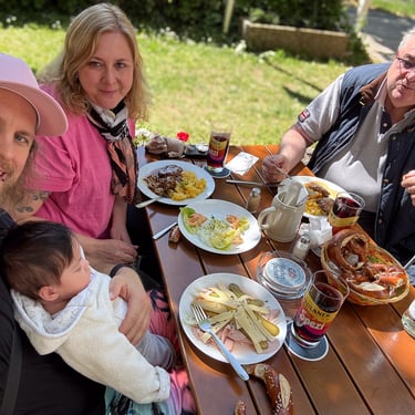 Am Montagnachmittag stand dann schon unser erster großer Ausflug an: Wir wagten uns in den Biergarten! Und Emilia lernte (kurz) ihren Opa kennen. Ein Tag voller Premieren!