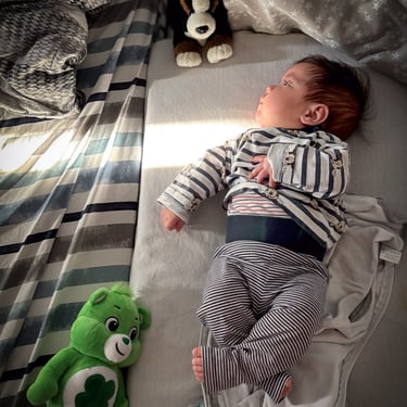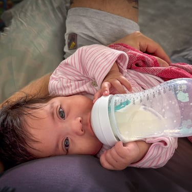 Emilia strahlte am Morgen, als hätte sie die beste Nacht ihres Lebens verbracht. Nach dem ersten Fläschchen haben wir beide uns entschieden, nochmal ein Verdauungsschläfchen zu machen. Klappte auf Anhieb super (für uns beide).