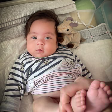 Zeit fühlt sich momentan trotzdem an wie Gummi: Morgens 7 Uhr Montag, dann plötzlich 16 Uhr und Dienstag, und wir wissen nicht, wo die Stunden hin sind. Aber wir lieben es (was sollten wir auch sonst sagen...). Das Lächeln, das uns dieses kleine Wesen tagtäglich schenkt (= "angeborener Reflex in diesem Alter" lt. einer Aussage, hin oder her), lässt jeden Stress und Schlafmangel vergessen.