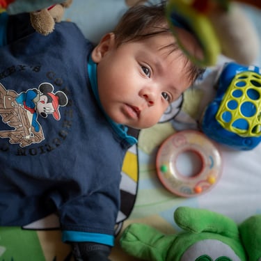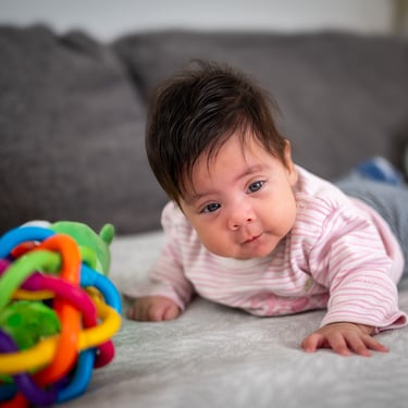 Selbstständige komplette Drehung vom Bauch auf den Rücken auf ebener Fläche können wir auch schon (ob das noch eher Zufall oder bereits gewollt ist, ist eine andere Frage)