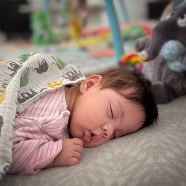 Wer hätte gedacht, dass so ein winziger Mensch so viel Lärm machen kann, ohne wach zu werden? Ich fand es eigentlich ganz beruhigend…