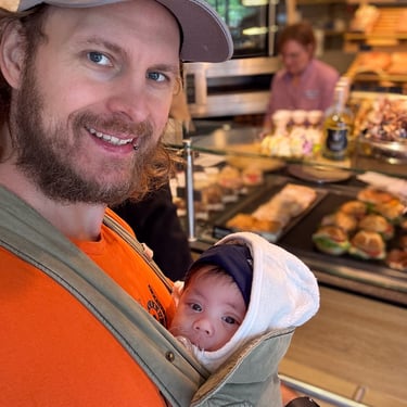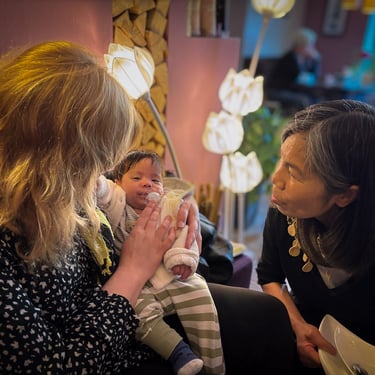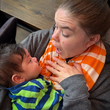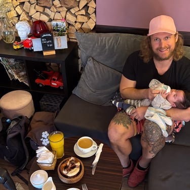 (und erste Versuche, mit Baby am Arm einhändig Kaffee zu trinken und zu essen)