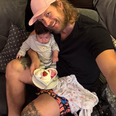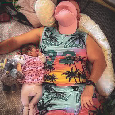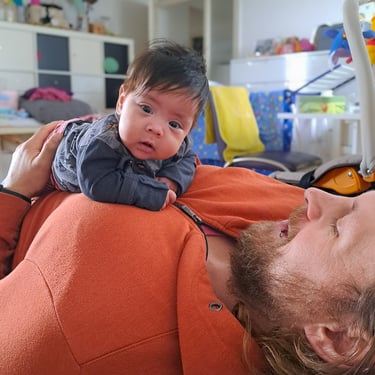 Und weil Eltern ja auch regelmäßig "an sich denken" müssen, der Versuch einer ersten Sport Einheit von mir nach vier Wochen Pause. Es sollten eigentlich Klimmzüge mit Zusatzgewicht für 5 Sätze werden. Abbruch aber schon nach dem ersten Satz, da meine Trainingspartnerin spontan eingeschlafen ist - während dem Satz. Na toll. Wiedereinstieg ins Training wird also nochmals verschoben.