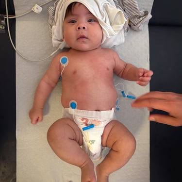 Freitag stand der Kardiologie-Termin an. Eine weitere „erste“ neue Herausforderung: Zu einem bestimmten Zeitpunkt an einem bestimmten Ort sein, zu dritt. Optional, aber nicht unwichtig: am besten ohne Geschrei, Stress und gut gelaunt. Klappte allen Erwartungen nach wesentlich besser als erwartet! Die erste Fahrt im Auto zu dritt war auch eine Premiere – Kindersitz top, alles lief super! Auch beim Arzt selbst hat die Kleine alles brav mitgemacht (sieht auch schlimmer aus als es war).