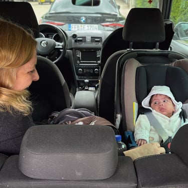 09:24 Uhr: Uns fällt auf, dass wir keine Mütze für’s Baby dabei haben. Ina rennt nochmal noch in die Wohnung