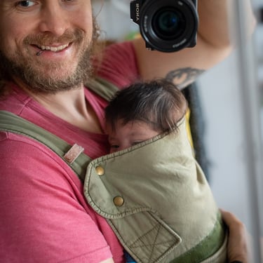 09:15 Uhr: Trage anlegen in der Wohnung. Baby grinst (noch). Wir fühlten uns wie Superhelden.